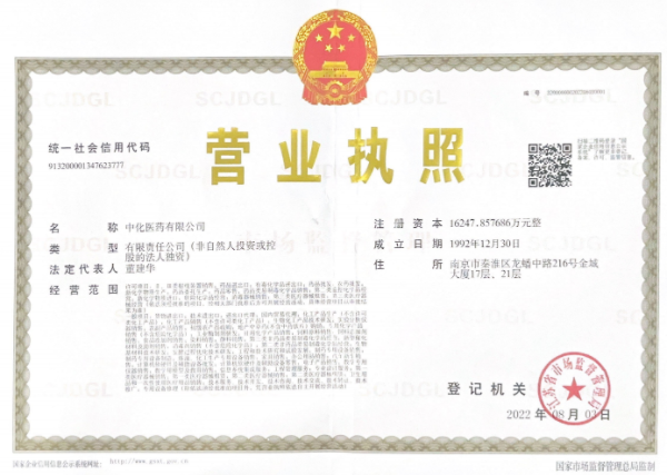 中化醫藥有限公司是世界500強中國中化成員企業,總部位于江蘇省南京市,成立于1973年,注冊資本1.62億元。